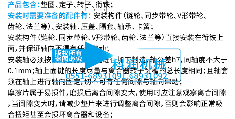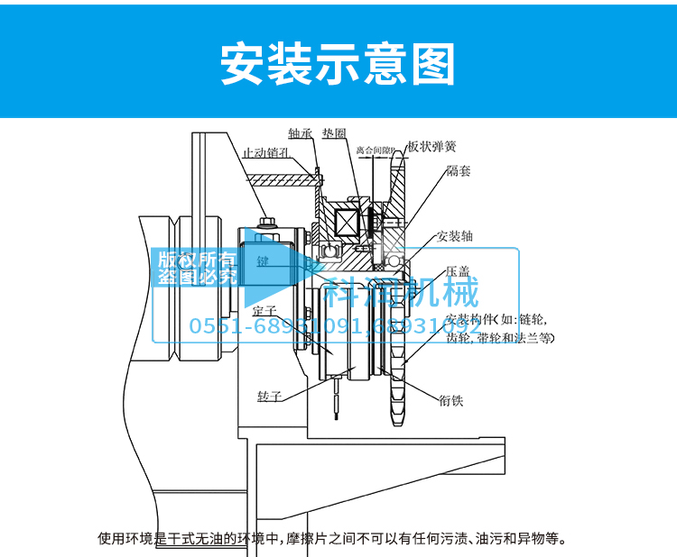 2、銜鐵與法蘭構(gòu)件配合,可自行與帶輪、鏈輪、齒輪等構(gòu)件配合安裝使用。